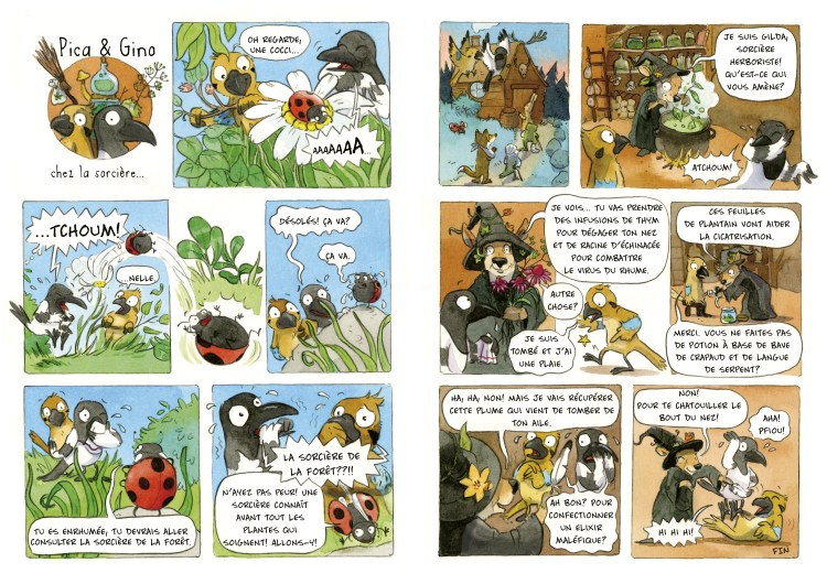 Création avec Fleur Daugey de la bande-dessinée « Pica &Gino » pour chaque numéro de la revue suisse Croc’Nature de Pro Natura. Depuis 2014